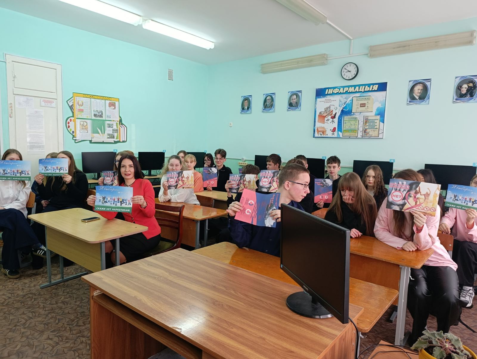 05.03.2026 в рамках акции "#ЖивиБез Наркотиков" с учащимися 8-11 классов прошел открытый диалог на тему: "Профилактика зависимостей" с участием инструктора-валеолога УЗ "Волковысская ЦРБ" Бердик О.В.