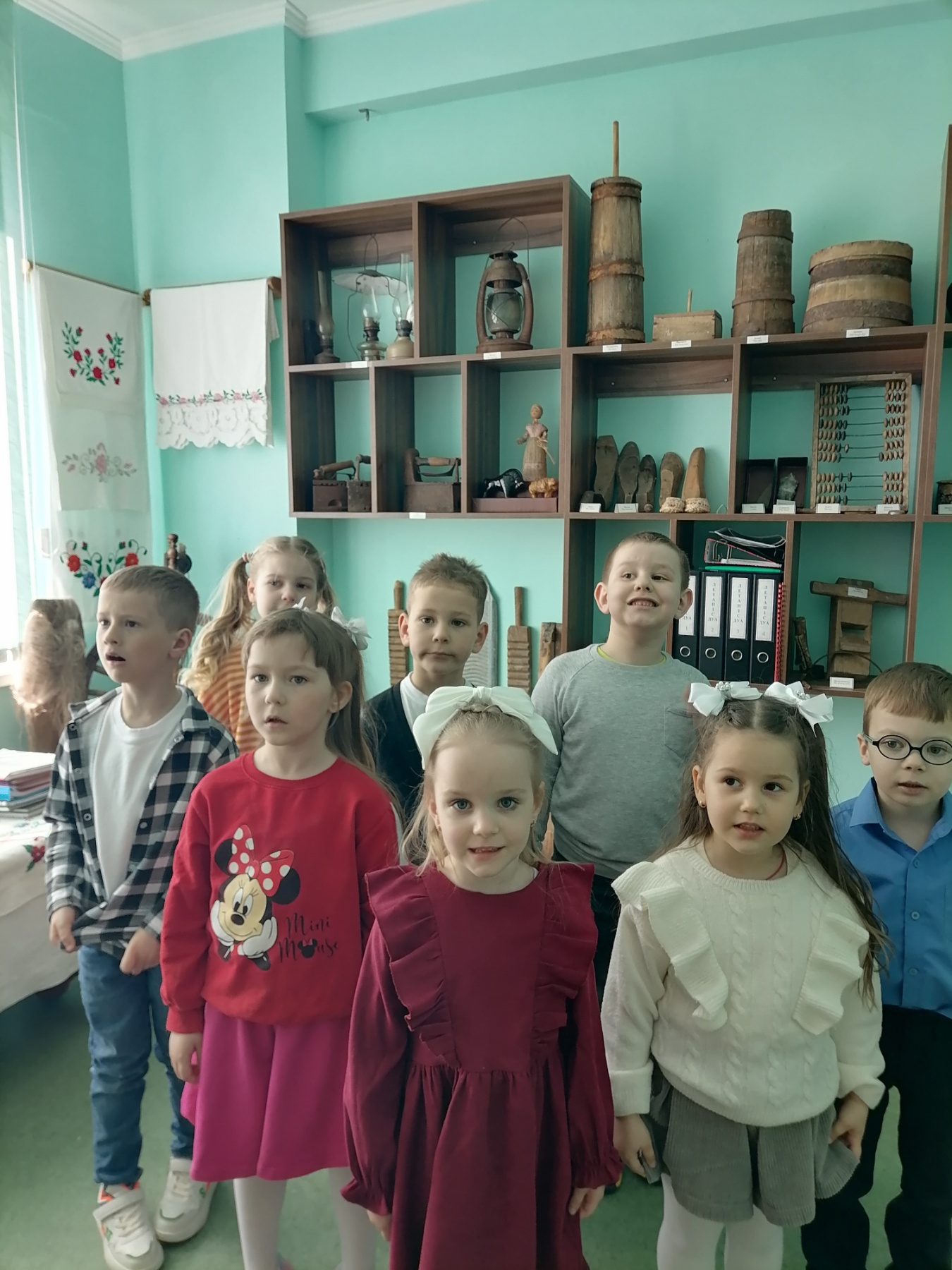 У рамках Тыдня прадметаў эстэтычнага цыклу прайшлі інтэграваныя заняткі ў школьным музеі па адукацыйных абласцях “Дзіця і грамадства” І “Мастацтва: аплікацыя” па тэме “Аб чым паведаміў ручнік”. Дзеці даведаліся пра працу людзей па стварэнні ручніка, пра яго сімвалы і значэнне для чалавека. А ў групе стварылі аплікацыю сімвала “Чысціня”. Дзецям была прадстаўлена магчымасць яшчэ раз зразумець, што мы жывем у цудоўнай і непаўторнай, працавітай і багатай краіне.