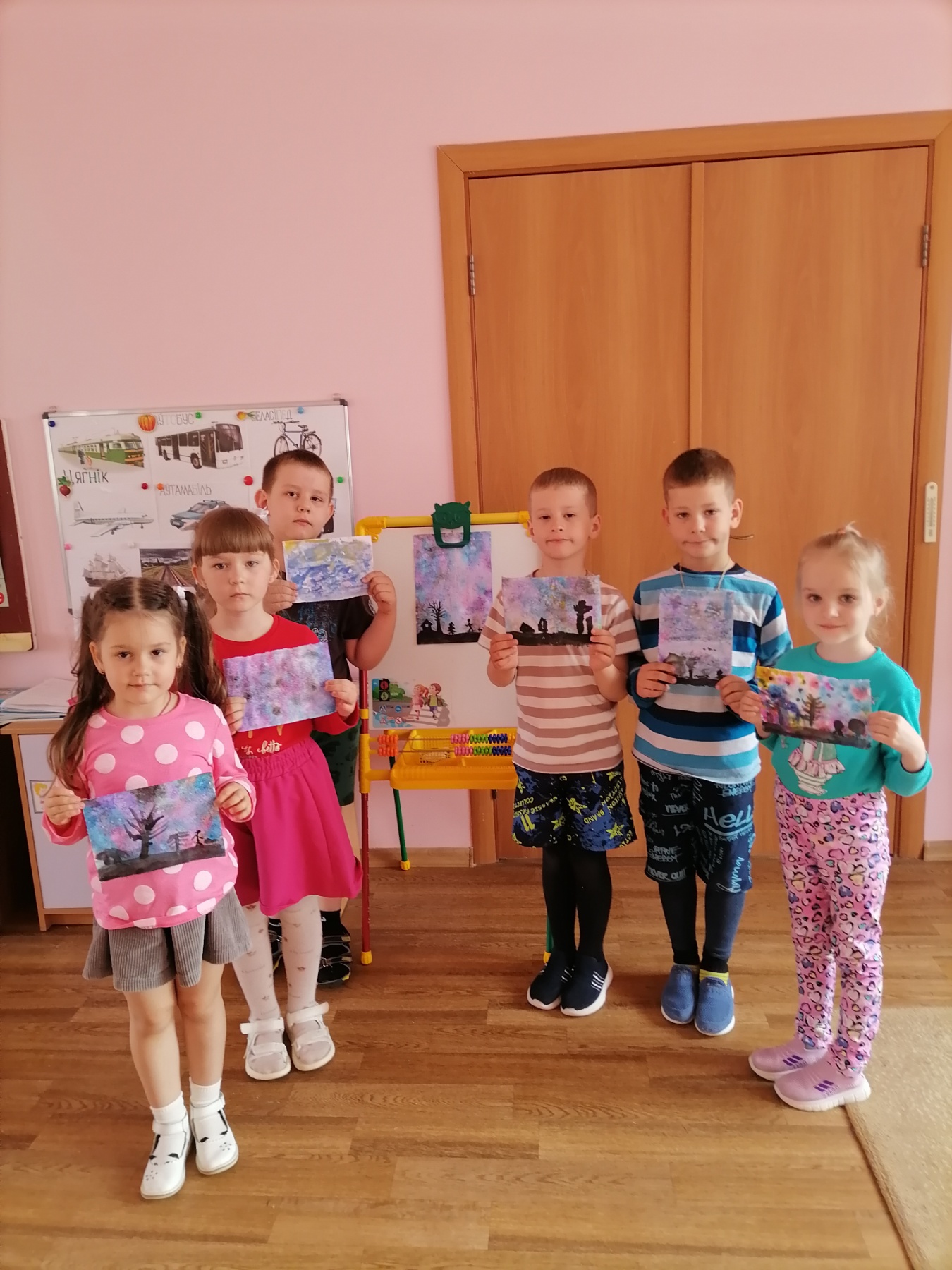 У гэты ж дзень, 12 красавіка, адзначылі 65-ю гадавіну першага палёта ў космас Ю.Гагарына. Дзеці даведаліся, што і ў Беларусі ёсць ужо 4 касманаўты, і сярод іх жанчына- М.Васілеўская. А потым яны з вялікім задавальненнем малявалі Млечны шлях у новай тэхніцы “па мокрым” акварэллю з соллю. Гэтая работа дазволіла сфарміраваць не толькі першапачатковыя ўяўленні пра космас, але пашырыць увогуле кругагляд.