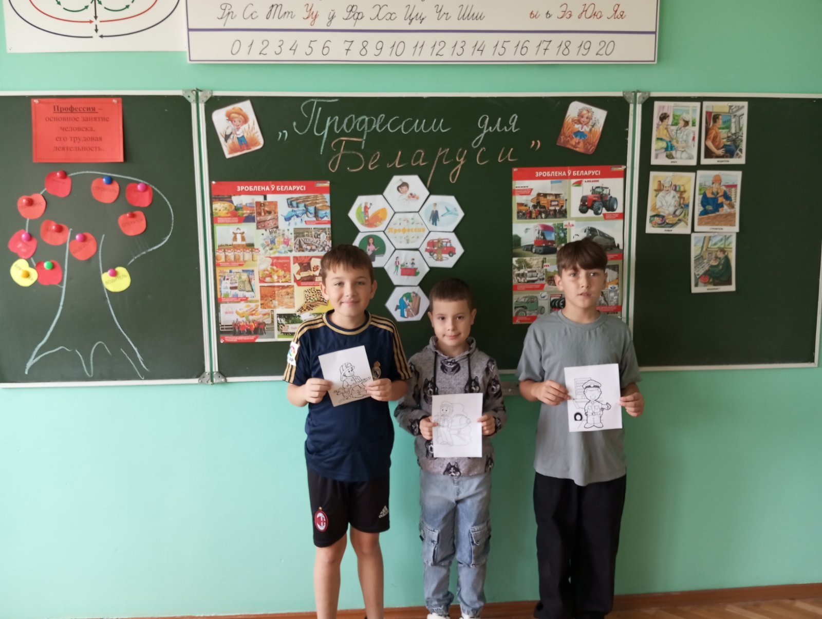 В шестой школьный день в рамках Дня трудового воспитания и профессиональной ориентации для учащихся начальных классов был проведён час общения «Профессии для Беларуси».